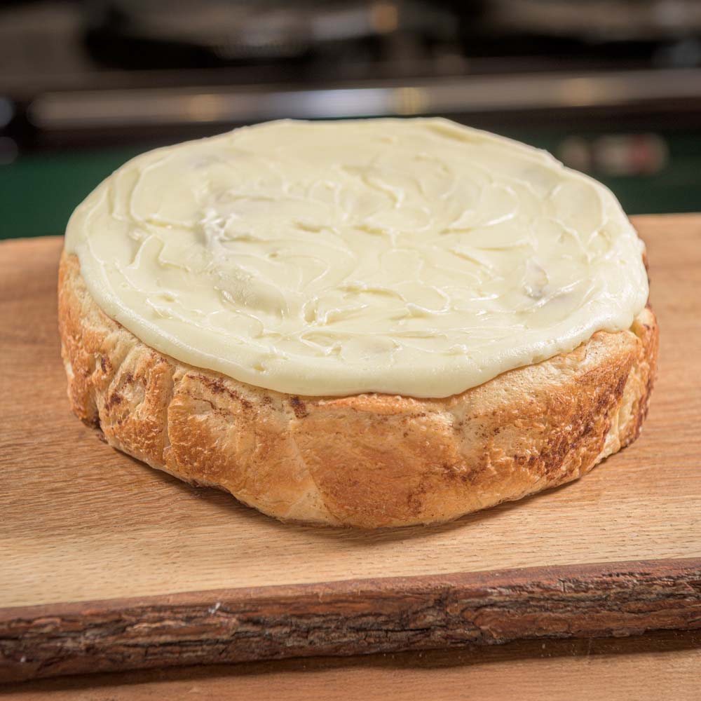 One gigantic award-winning Cinnamon Square bun, topped with our cream cheese frosting.
